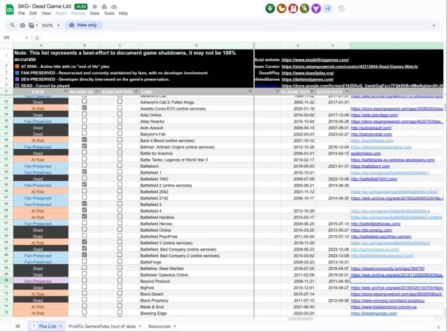 SKG hareketi, terk edilmiş çevrimiçi oyunların sayısındaki bu endişe verici artışı belgelemek için kapsamlı bir wiki platformu başlatma çalışmalarını sürdürüyor. Bu süreçte oyuncuların başvurabileceği iki önemli kaynak bulunuyor: